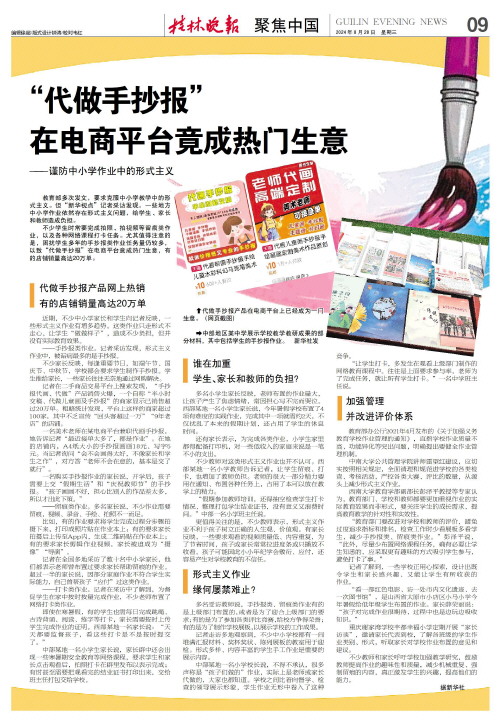 “代做手抄报”在电商平台竟成热门生意 ——谨防中小学作业中的形式主义 ●详见 9 版