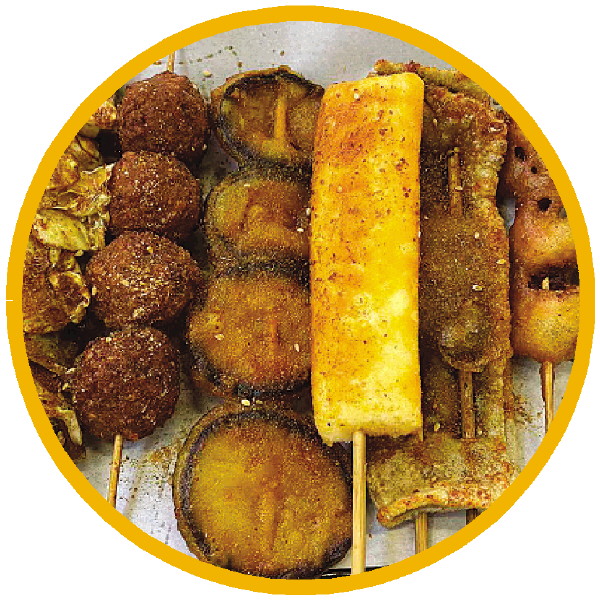 这家炸串店的菜品种类很多,有荤有素。很多串经过精心腌制,裹完面糊再高温油炸,外皮金黄酥脆。面糊带着一点点甜味,内里鲜嫩多汁。刷的酱料很像小时候在学校门口吃到的味道,很独特,让人一尝难忘。