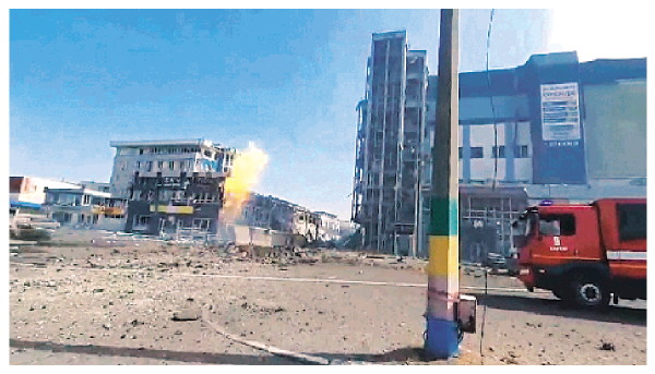 当地时间9月1日,哈尔科夫遭到俄罗斯导弹袭击,基础设施遭到破坏。(图源:央视网)