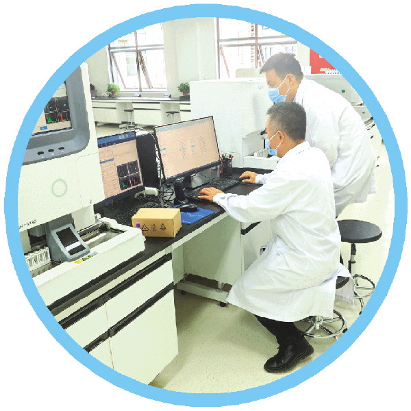 检验科中,医护人员正在进行样本分析。