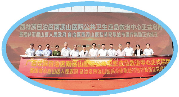 9月2日,广西壮族自治区南溪山医院成功举办公共卫生应急救治中心启用仪式暨桂林市雁山区人民政府、自治区南溪山医院紧密型城市医疗集团揭牌仪式。该公共卫生应急救治中心是广西疫后重振公共卫生体系补短板工程项目之一,结束了雁山区没有二级以上公立医院的历史,极大优化了政务服务环境,弥补了雁山区缺少高品质公立医院的短板,显著缓解了区域医疗资源紧张问题,为人民群众提供了更优质、便捷的医疗卫生服务。