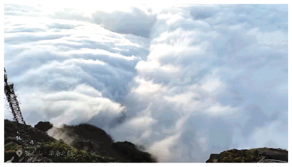 猫儿山云海,“大圣”视角带你在猫儿山上腾云驾雾。(视频截图)