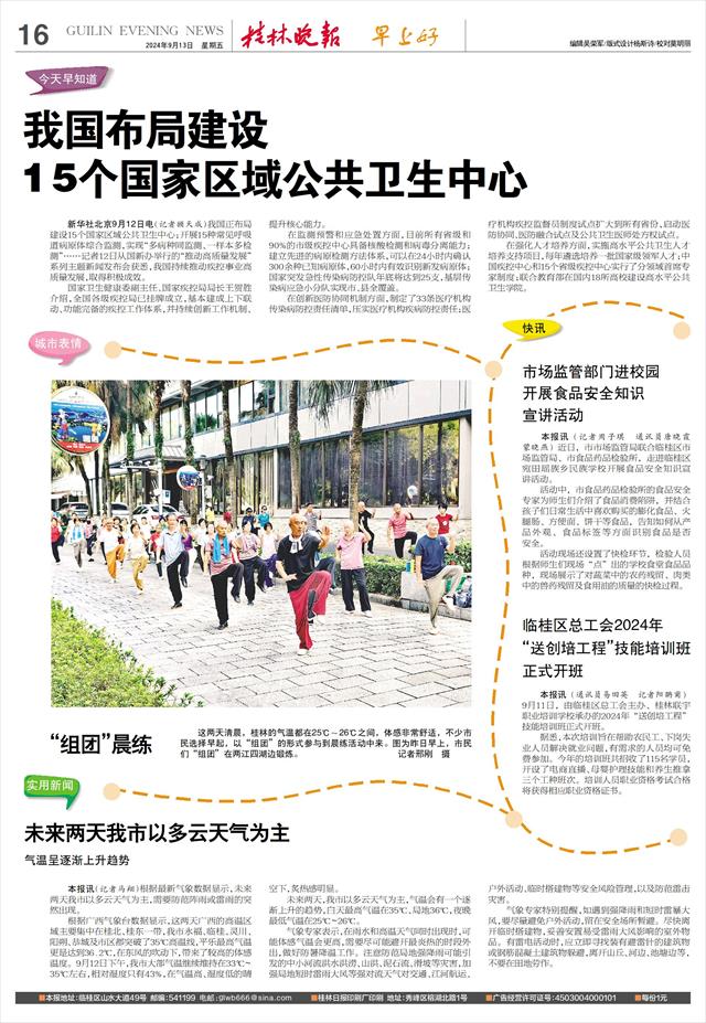正式开班   本报讯(通讯员易田英 记者阳聃甫)9月11日,由临桂区总工会主办、桂林联宇职业培训学校承办的2024年“送创培工程”技能培训班正式开班。