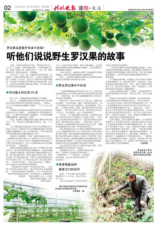 罗汉果品质提升有多不容易? 听他们说说野生罗汉果的故事   永福,世界罗汉果的原产地,中国罗汉果之乡。上个月,永福县“创机制强品牌 小神果成就大产业”案例入选推介第二批农业生产“三品一标”典型案例名单,也是自治区唯一入选案例。