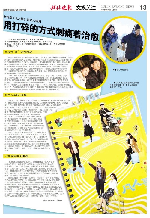和大多数先抑后扬的都市话题剧不同,《凡人歌》几乎全程带着刺痛感,大结局所给的一点点爽里也夹杂着刺痛。男主角那伟以近乎无赖的方式从出家还俗的老板王睿智那里硬拿回了80万,刺痛的是,他发现当年自己出于情谊、忠心自掏腰包为老板偿还债务的真相,竟然是老板自编自导的一场骗局。观众熟悉的国产剧大结局多是温暖的治愈,但《凡人歌》是刺痛的治愈。看到那伟一家历经困境,又从生活的谷底爬起,渐渐境况变好时,会带给人直面严峻生活的勇气。但这种用打碎的方式,刺痛着治愈的剧情,也让很多观众感到不适,发出究竟是治愈,还是致郁的质疑。