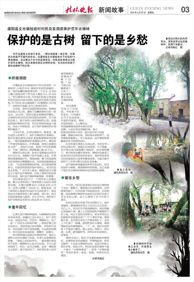 灌阳县文市镇桂岩村村民自发捐资保护百年古樟林
