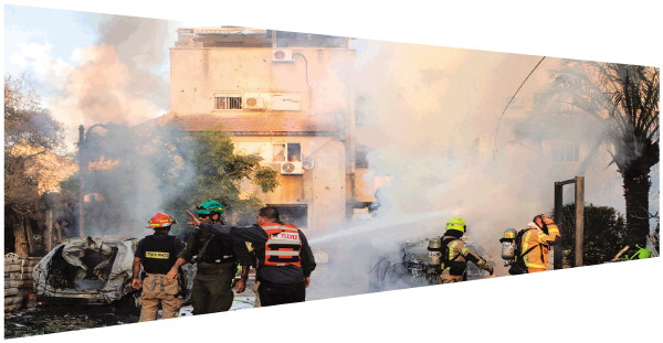 9月22日,在以色列北部城镇比亚利克,消防人员在袭击现场进行灭火作业。