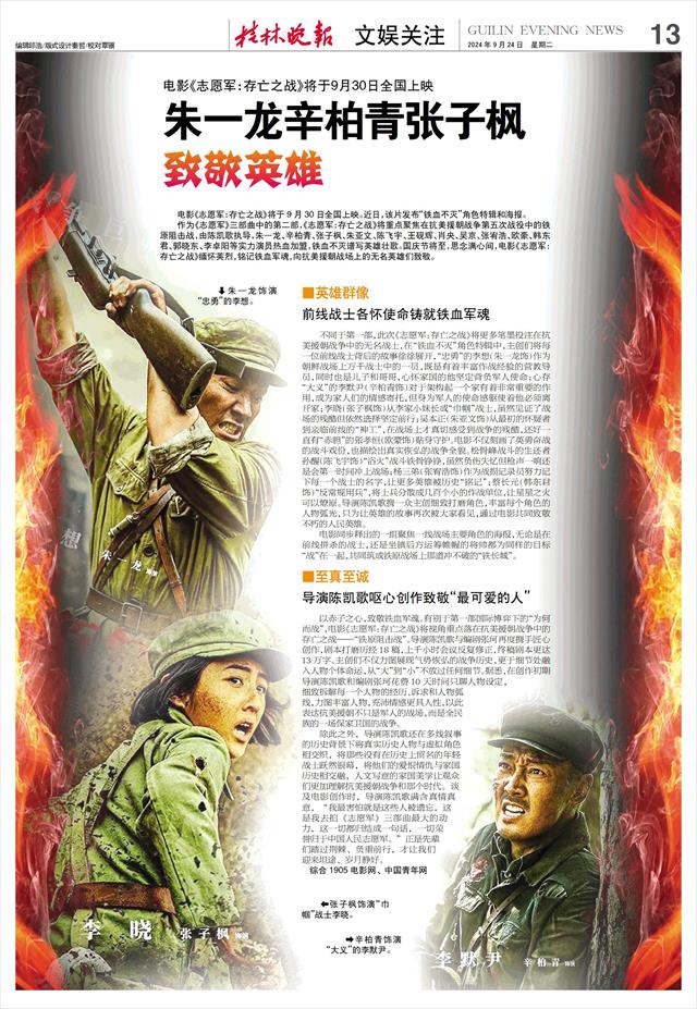 以赤子之心,致敬铁血军魂。有别于第一部国际博弈下的“为何而战”,电影《志愿军:存亡之战》将视角重点落在抗美援朝战争中的存亡之战——“铁原阻击战”。导演陈凯歌与编剧张珂再度携手匠心创作,剧本打磨历经18稿,上千小时会议反复修正,终稿剧本更达13万字。主创们不仅力图展现气势恢弘的战争历史,更于细节处融入人物个体命运,从“大”到“小”不放过任何细节。据悉,在创作初期导演陈凯歌和编剧张珂花费10天时间只聊人物设定,细致拆解每一个人物的经历、诉求和人物弧线,力图丰富人物,充沛情感更具人性,以此表达抗美援朝不只是军人的战场,而是全民族的一场保家卫国的战争。