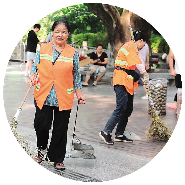 ↑环卫部门加大了工作人员数量,对游客较为集中的滨江路进行清扫。