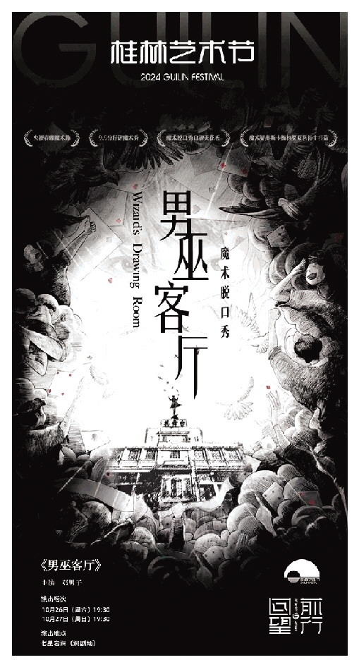 沉浸式魔术脱口秀《男巫客厅》导演、主演邓男子为央视虎年春晚魔术师,跨界主持人。他也是内地首位获得魔术界“奥斯卡”梅林奖的魔术师,《男巫公会》创始人、主演。