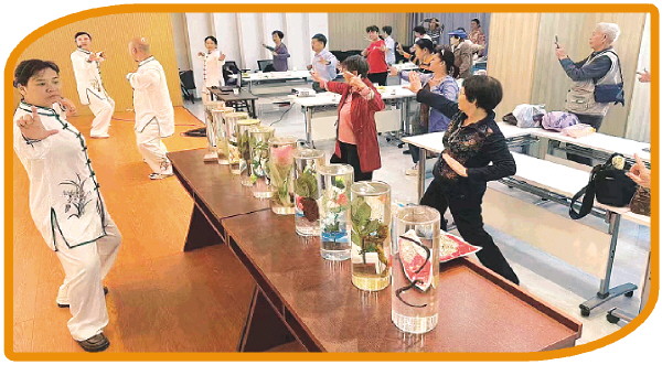 活动中,中医药养生专家、东江社区卫生服务中心主任赵东梅为老年人讲解日常衣食住行的中医养生理论,还和她的团队现场教授八段锦。在场的长者们认真学习着每一个动作,一招一式力求标准。他们专注的神情,展现出对健康的追求和对生活的热爱。社区工作人员为大家准备了重阳养生茶和点心,祝福所有老年人“时光不老,快乐永久”。