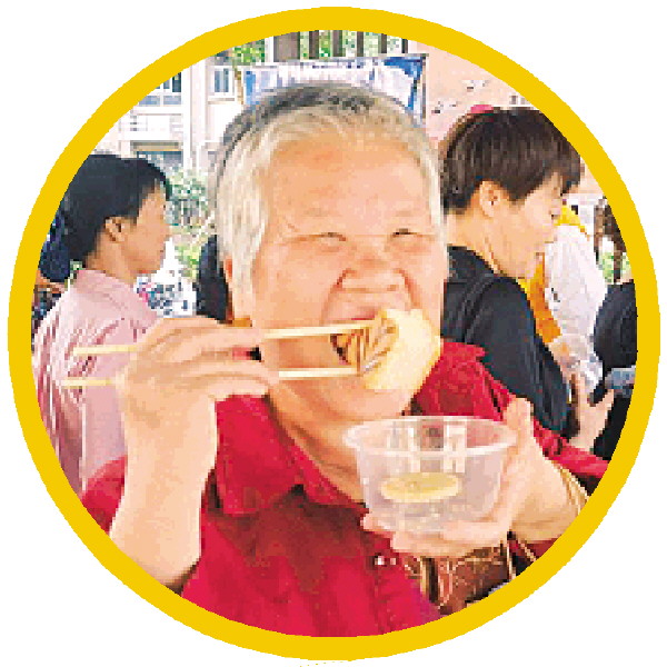 融和社区的老人开心地品尝糕点。 记者周子琪 摄