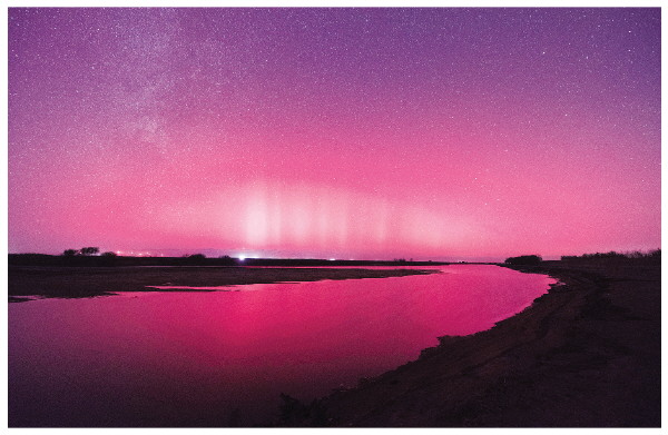 图为10月11日凌晨在黑龙江省富锦市松花江畔拍摄的极光。 新华社发