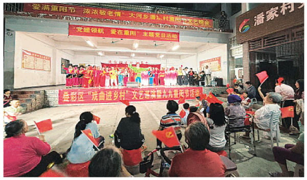 10月11日晚,叠彩区大河乡潘家村沉浸在一片浓厚的节日氛围中。一场主题为“爱满重阳节,浓浓敬老情”的重阳节敬老活动在这里温情上演,为村里的老人们送上了一场丰富多彩的“文化大餐”。这场活动,不仅展现了潘家村尊老敬老的深厚传统,也体现了村委对老年人的关怀。据了解,这已是潘家村委连续22年举办敬老活动。记者马翔 摄