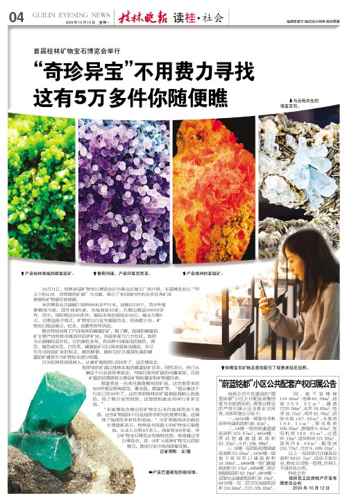 10月11日,桂林首届矿物宝石博览会在市象山区德天广场开幕。本届博览会以“甲天下的山水 世界级的矿晶”为主题,吸引了来自国内外的众多优秀矿商参展和矿物爱好者观展。