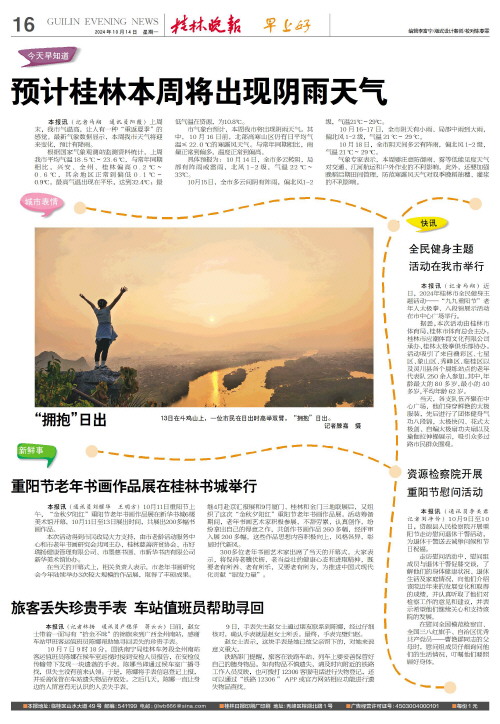 本报讯(记者马翔)近日,2024年桂林市全民健身主题活动——“九九重阳节”老年人太极拳、八段锦展示活动在市中心广场举行。