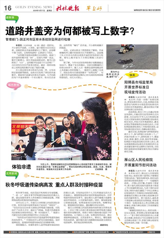 道路井盖旁为何都被写上数字? 管理部门:因正对市区排水系统防坠网进行检修   本报讯(记者陆鑫 文/摄)最近一段时间,不少家住芦笛路、八里街、建干路的市民告诉记者,沿路的排水井盖旁都被写上了数字。这是哪个部门写的,又有何用途呢?记者进行了采访。