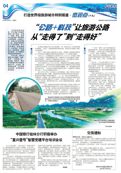 今年以来,桂林公路部门全力推进“公路+科技”,利用新工艺、新设备、新技术、新材料持续提升养护质量和路况水平,让这条“最美旅游公路”不但有最好的风景,还有舒适的驾车体验。