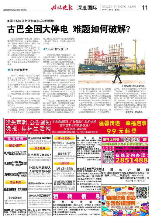 部分公交线路临时调整   本报讯(记者林扬 通讯员阳娟)记者从桂林公交获悉,为配合桂林艺术节开幕式,2024年10月24日至10月26日,22路、213路将临时改道运行。