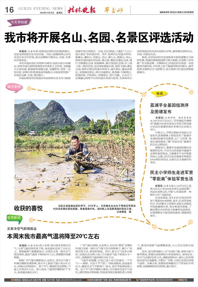 为深入挖掘桂林山水风光及历史文化价值,我市近期将开展名山、名园、名景区评选活动。
