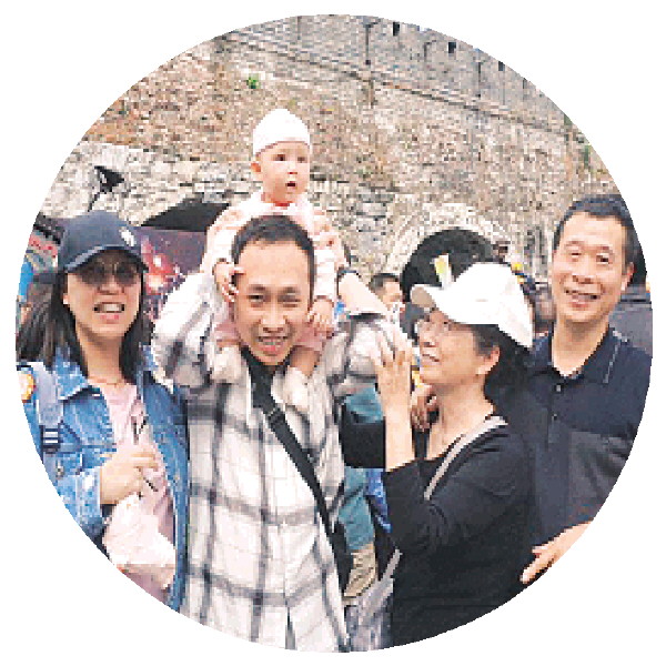 王林茜一家在巡游现场。