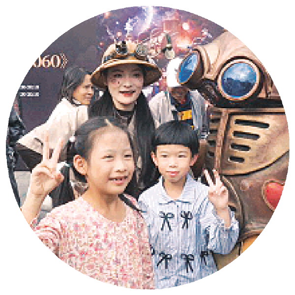 下午2点半,来自剧有戏艺术社的演员们身着造型感极强的服装,带来了融合艺术装置、戏剧、视觉等表演方式的朋克星球艺术作品。演出期间,演员们邀请了大人和孩子一起互动,把现场气氛推向了高潮。