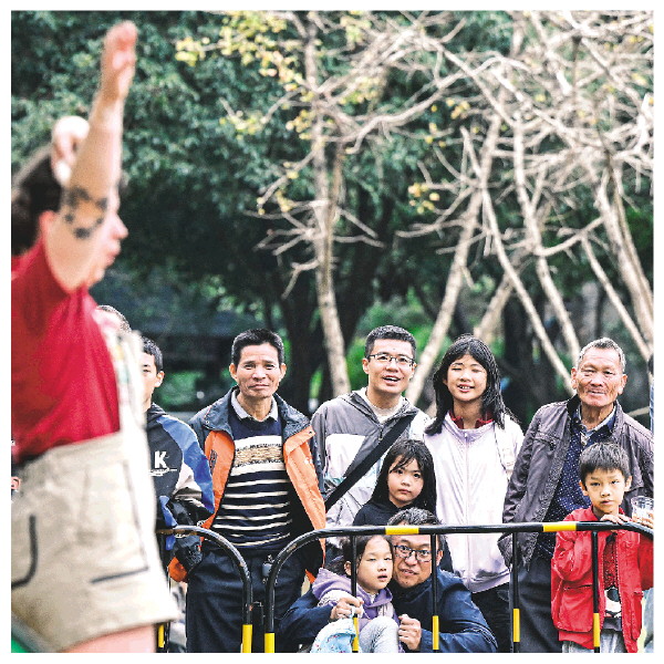 车志龙带女儿在七星景区内的树剧场观看《丛林奇幻探险》。