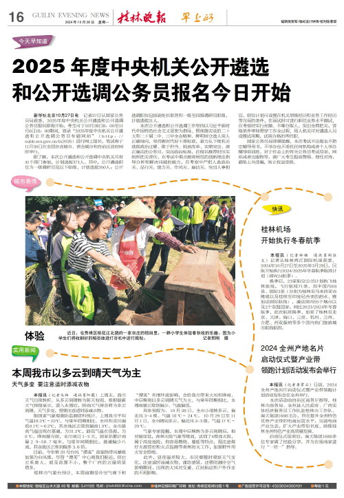 和公开选调公务员报名今日开始   新华社北京10月27日电 记者27日从国家公务员局获悉,2025年度中央机关公开遴选和公开选调公务员报名即将开始,考生可于10月28日8:00至11月6日18:00期间,登录“2025年度中央机关公开遴选和公开选调公务员专题网站”(http://subb.scs.gov.cn/lx2025)进行网上报名,笔试将于11月30日在全国各直辖市、省会城市和自治区首府同时举行。