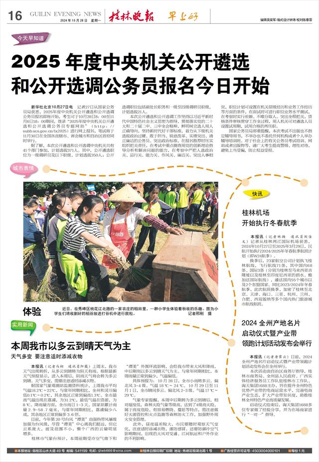 本报讯(记者林扬 通讯员刘佳文)记者从桂林两江国际机场获悉,2024年10月27日至2025年3月29日,民航开始执行2024/2025年冬春航季航班计划(即W24航季)。