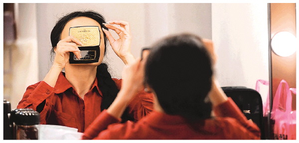 下午5点30分,演员们再次来到剧场里,做演出前的准备。化妆间里,演员们有的互相帮忙化妆,有的交流表演心得,有的则抓紧时间看台词本。“虽然已经对台词很熟悉了,但每次开演前还会再看一次,确保不出错。”演员龙丹丹说。