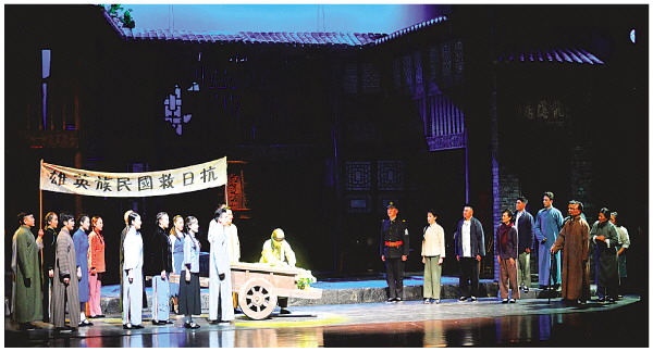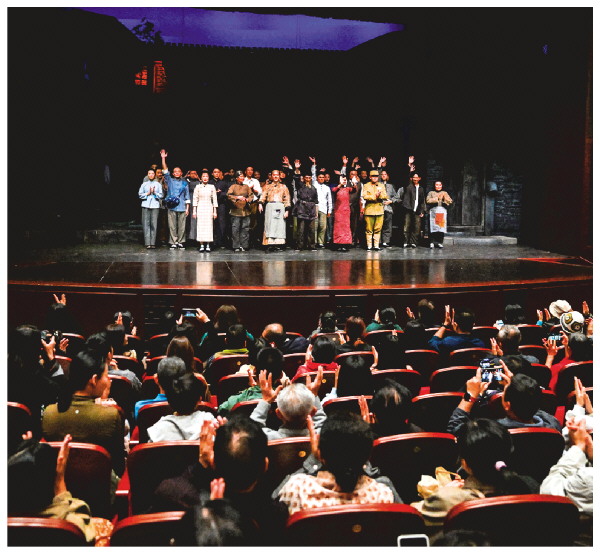 演出结束后,演员谢幕,观众席上响起热烈掌声。
