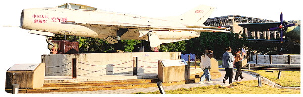 航空文化广场的展示台上,陈列着运-5运输机、歼-6战斗机等空军大型退役武器装备实物。
