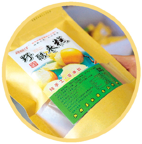 村民们还以酸枣为基础,加入当地产的百香果、金桔等,做成百香果糕、金桔糕、火龙果糕、脐橙糕等等。这些新搭配受到了很多顾客的喜欢。