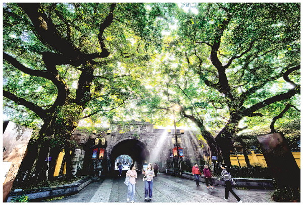 桂林最近天气晴好,冬日阳光肆意播撒在城市里。日前在靖江王城东华门附近,太阳光穿过树梢洒落下来,形成如梦似幻的光影效果。 通讯员李腾钊 摄