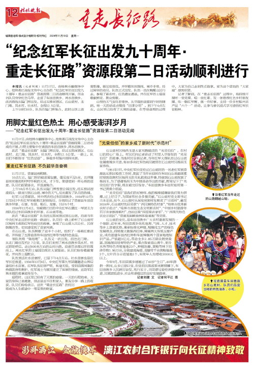 用脚丈量红色热土 用心感受澎湃岁月 ——“纪念红军长征出发九十周年·重走长征路”资源段第二日活动见闻   11月17日,由桂林市融媒体中心、桂林湘江战役文传中心主办的“纪念红军长征出发九十周年·重走长征路”资源段第二日活动成功开展,行程主要集中在该县的车田苗族乡、两水苗族乡。