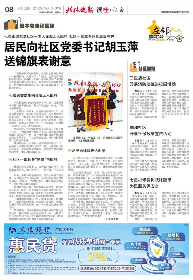 七星街道龙隐社区一老人住院无人照料 社区干部放弃休息温暖守护 居民向社区党委书记胡玉萍
