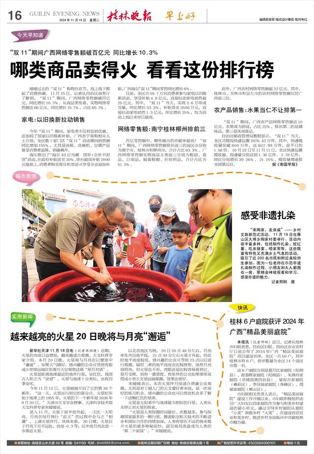 此外,广西农村网络零售额超22亿元。其中,桂林市、玉林市和崇左市的农村网络零售额位居广西前三位。