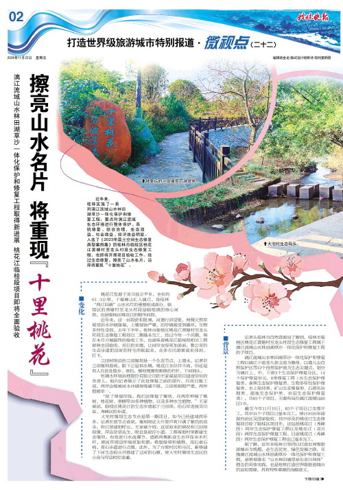 漓江流域山水林田湖草沙一体化保护和修复工程取得新进展 桃花江临桂段项目即将全面验收 擦亮山水名片 将重现“十里桃花” 上接02版