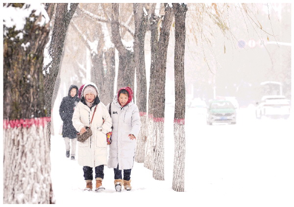 11月26日,市民在大兴安岭地区加格达奇区冒雪出行。