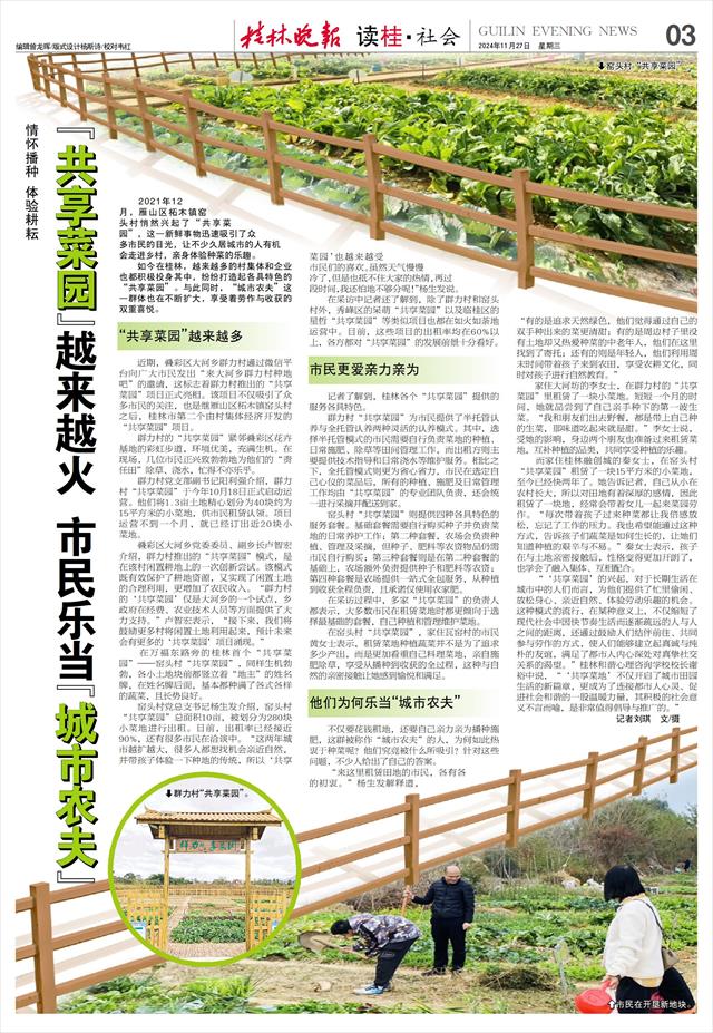 如今在桂林,越来越多的村集体和企业也都积极投身其中,纷纷打造起各具特色的“共享菜园”。与此同时,“城市农夫”这一群体也在不断扩大,享受着劳作与收获的双重喜悦。