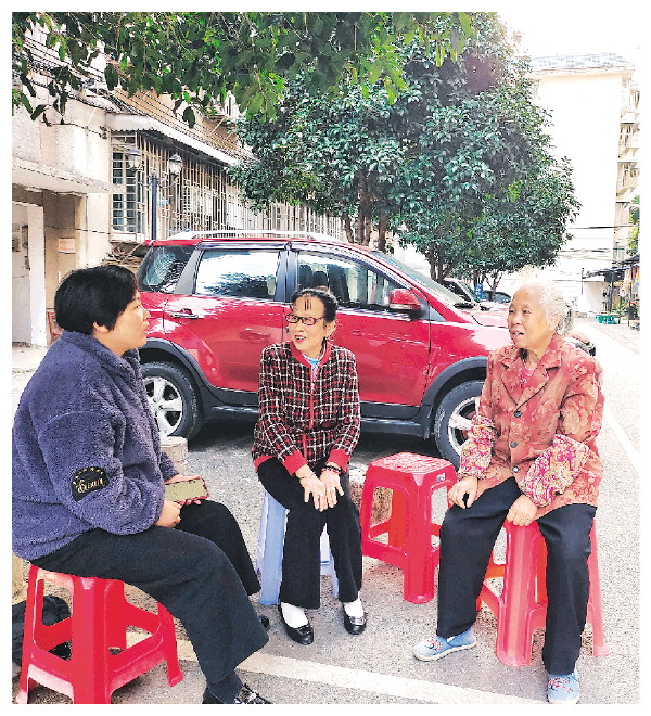 “你看路灯,是老梁他们自己安装的。”徐雪珍骄傲地介绍。她说的老梁是小区志愿者梁运七。梁运七加入团队后,主要负责一些技术活,修理路灯、车棚等。小区志愿者赖秀清和彭冬妹则负责小区洗洗刷刷的工作,小区的四个分类垃圾桶不但摆得整整齐齐,还洗得干干净净。此外,团队中还有陈秀清、侯云峰、陈朝协三位。陈朝协今年近90岁,只要自己身体允许,他还参加志愿活动。“把小区当我们的家一样打理。”这是小区志愿者的共同心声。