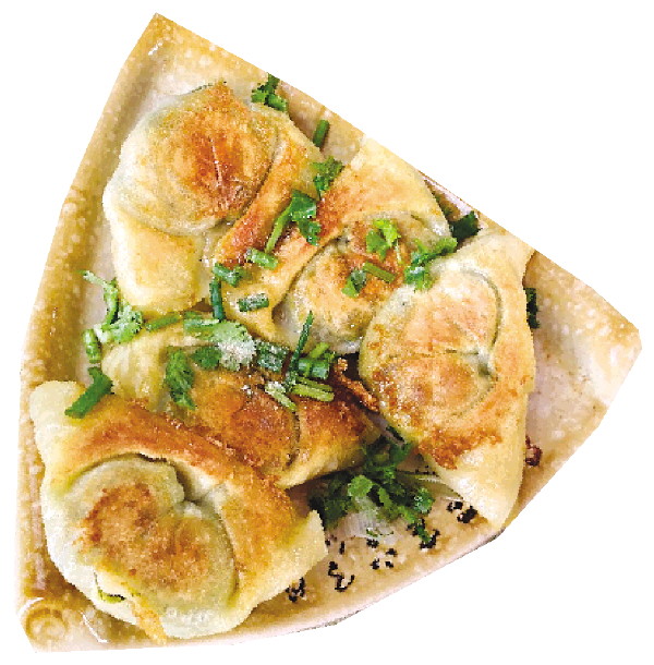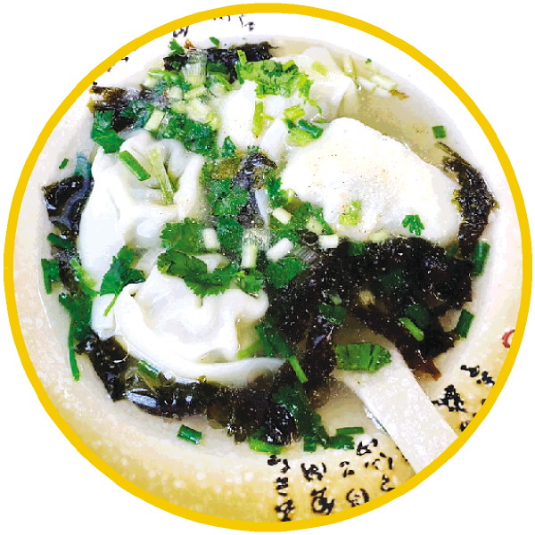记者选择了“荠菜鲜肉”“玉米鲜肉”以及“荠菜生煎”来品尝。下单后,老板即刻动手包馄饨,先将肉馅置于皮中央,对折,轻轻一弯,一个元宝状的馄饨便成形了,随后再将馄饨投入沸腾的汤水中翻滚,或是在煎锅中嗞嗞作响,香气扑鼻,令人垂涎欲滴。