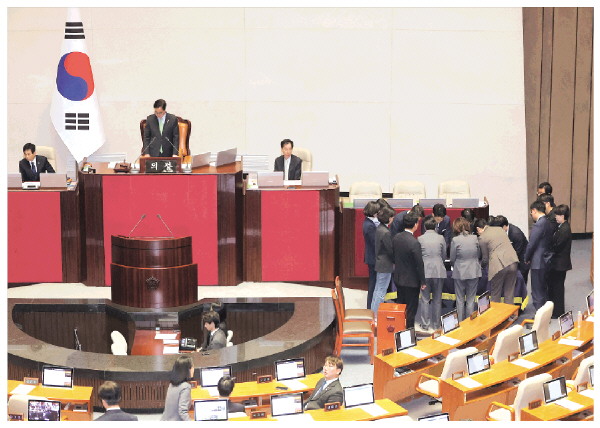 最终,在7日下午的国会全体会议上,绝大多数执政党议员先是对涉总统夫人的“金建希特检法”投下反对票将其否决,随后纷纷退场,拒绝参加接下来的总统弹劾动议案表决,导致该动议案因投票人数不足未获通过。