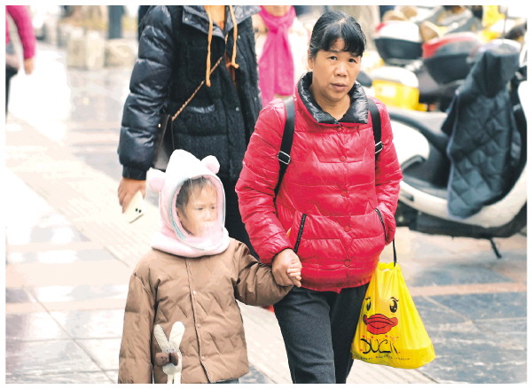 近日,桂林气温骤降,市民纷纷采取各种措施防寒保暖。昨天上午,在中山中路阳桥附近,一位大人牵着小孩行走,小孩头戴一款独特的大帽子,帽子配有面罩,将头和脖子都包裹得严严实实,显得格外暖和。
