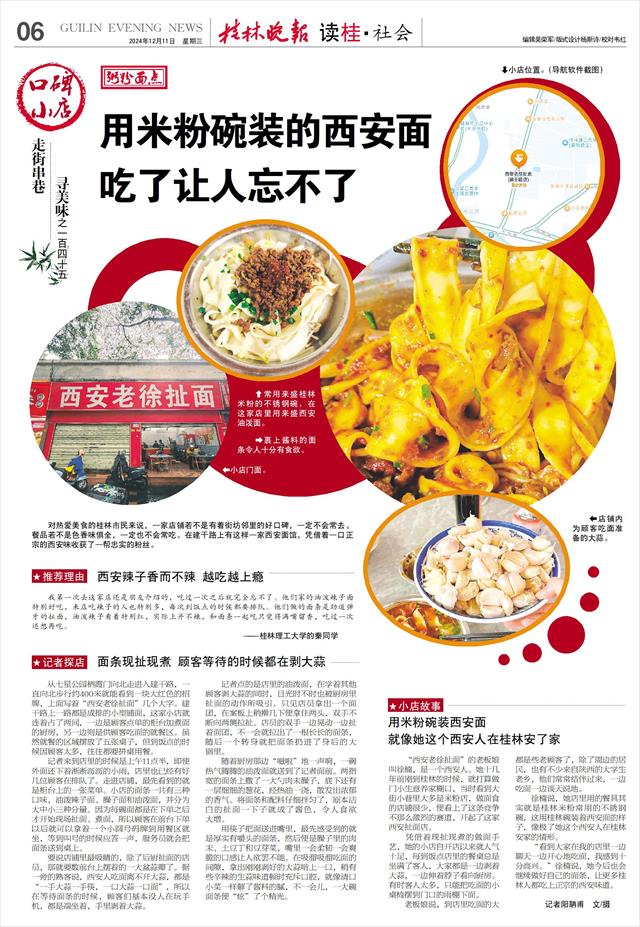 对热爱美食的桂林市民来说,一家店铺若不是有着街坊邻里的好口碑,一定不会常去。餐品若不是色香味俱全,一定也不会常吃。在建干路上有这样一家西安面馆,凭借着一口正宗的西安味收获了一帮忠实的粉丝。