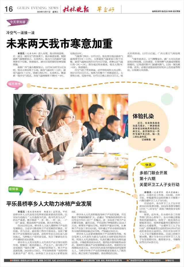 桥亭乡人大充分发挥人大代表在产业引领方面的作用,挖掘出一批经济能人、产业大户,成为柿子产业发展的“绿色引擎”。在他们的带动下,柿子产业迅速发展,2024年11月8日,平乐冰柿获得“全国名特优新农产品”称号,冰柿加工企业也从1家增加到8家。