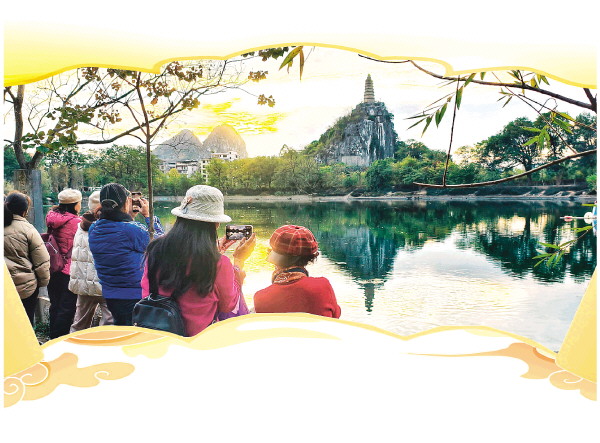 连续阴雨之后,桂林天气转晴。昨天傍晚,晚霞出现在天空,不少市民来到小东江附近拍摄“塔山夕照”美景。 记者滕嘉 摄