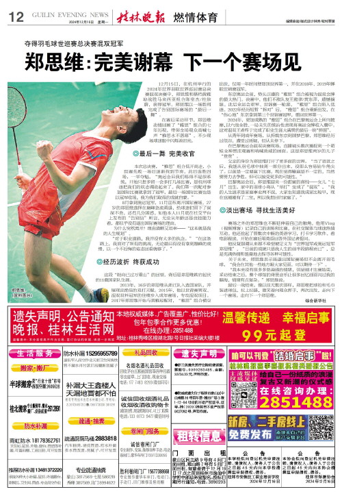 关于未来,郑思维表示虽退出国际赛场但不会离开羽毛球,“我会在其他一些地方跟大家见面,可以期待一下”。