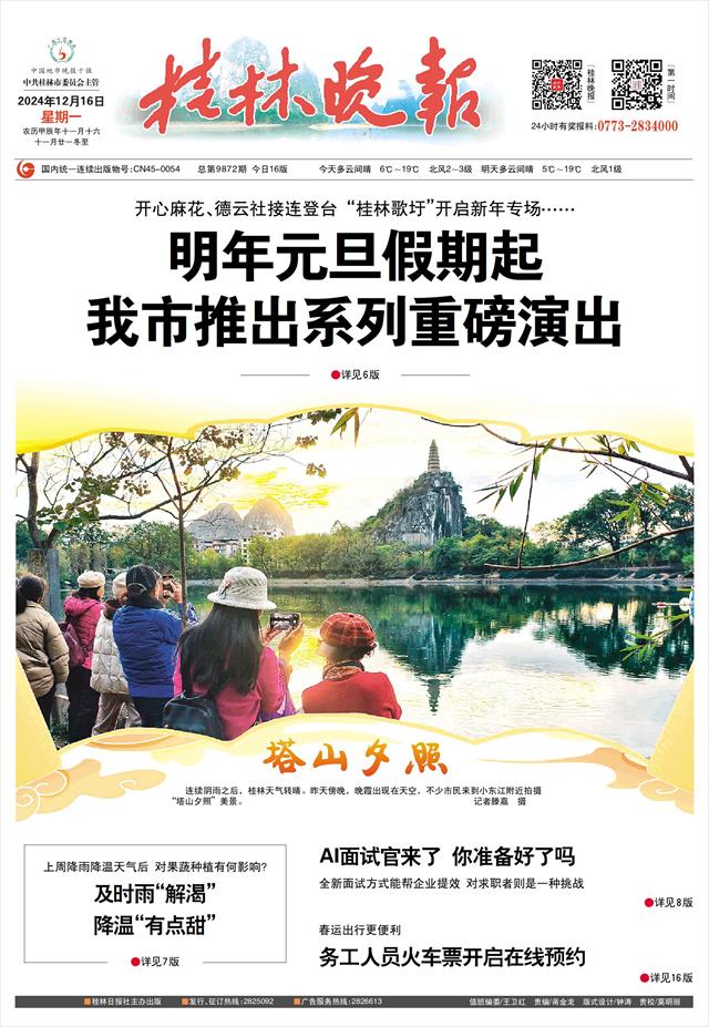 近日,记者从有关部门获悉,桂林漓江歌剧院演出季系列活动已经定档,多场舞台剧、音乐会等视听盛宴即将启幕。2025年元旦假期起,在山水画卷般的桂林,热门剧目将会轮番登台,邀您在梦幻舞台感受心灵触动,在动人旋律与精彩剧情中,开启难忘的文化之旅。