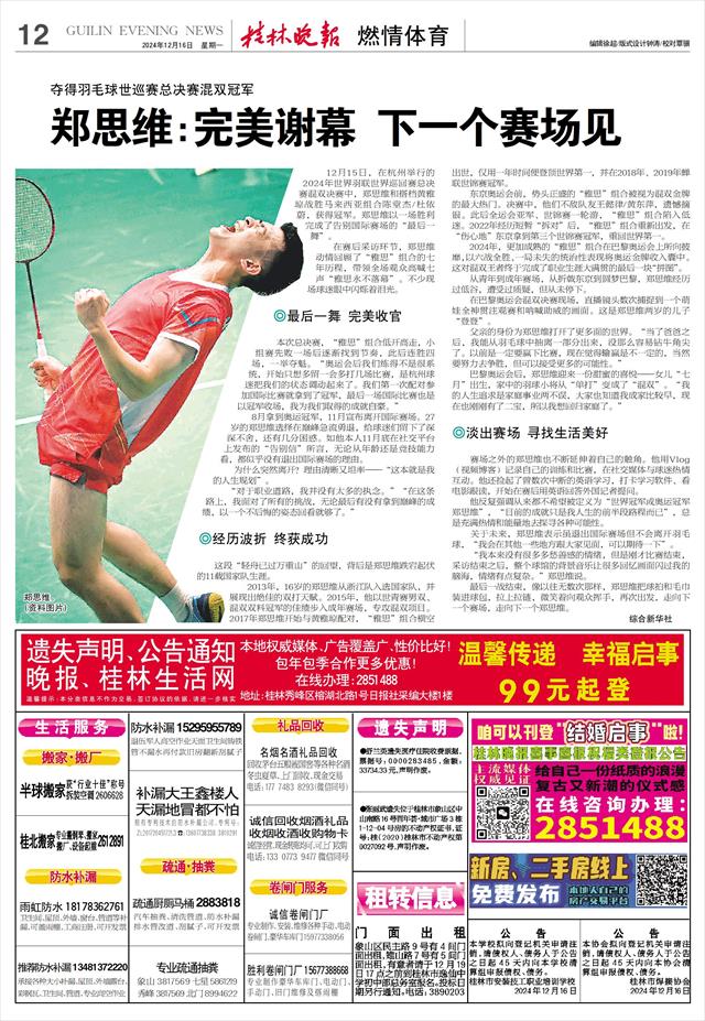 关于未来,郑思维表示虽退出国际赛场但不会离开羽毛球,“我会在其他一些地方跟大家见面,可以期待一下”。